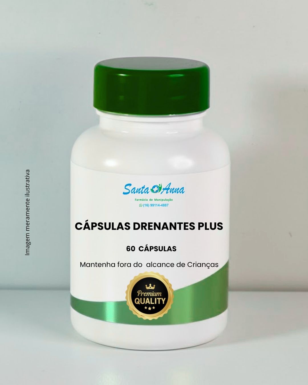 A fórmula Cápsulas Drenantes Plus é um composto fitoterápico com potente ação diurética, desintoxicante e antioxidante, geralmente manipulado para auxiliar na redução da retenção de líquidos, inchaço e no processo de emagrecimento. Ela é composta por :Drenow C (Opuntia ficus indica e Rosa canina), Hibiscus, Cavalinha, Carqueja, Dente-de-leão e Vinagre de maçã atua principalmente através de um potente efeito diurético, antioxidante e anti-inflamatório, que juntos agem reduzindo a retenção de líquidos e o inchaço. Também atuam no combate a radicais livres e inflamações, contribuem para o bom funcionamento do intestino, contra a glicemia e aumentam a sensação de saciedade.